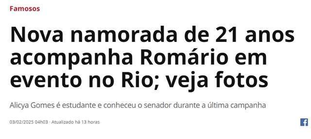 59岁的罗马里奥,如今的身份是里约美洲俱乐部主席、里约热内卢州议员。虽然已近花甲之年,但罗马里奥对于爱情的追求,从未停下脚步。近日,巴西媒体“Extra Globo”透露,独狼又恋爱了,新欢是21岁的女学生。